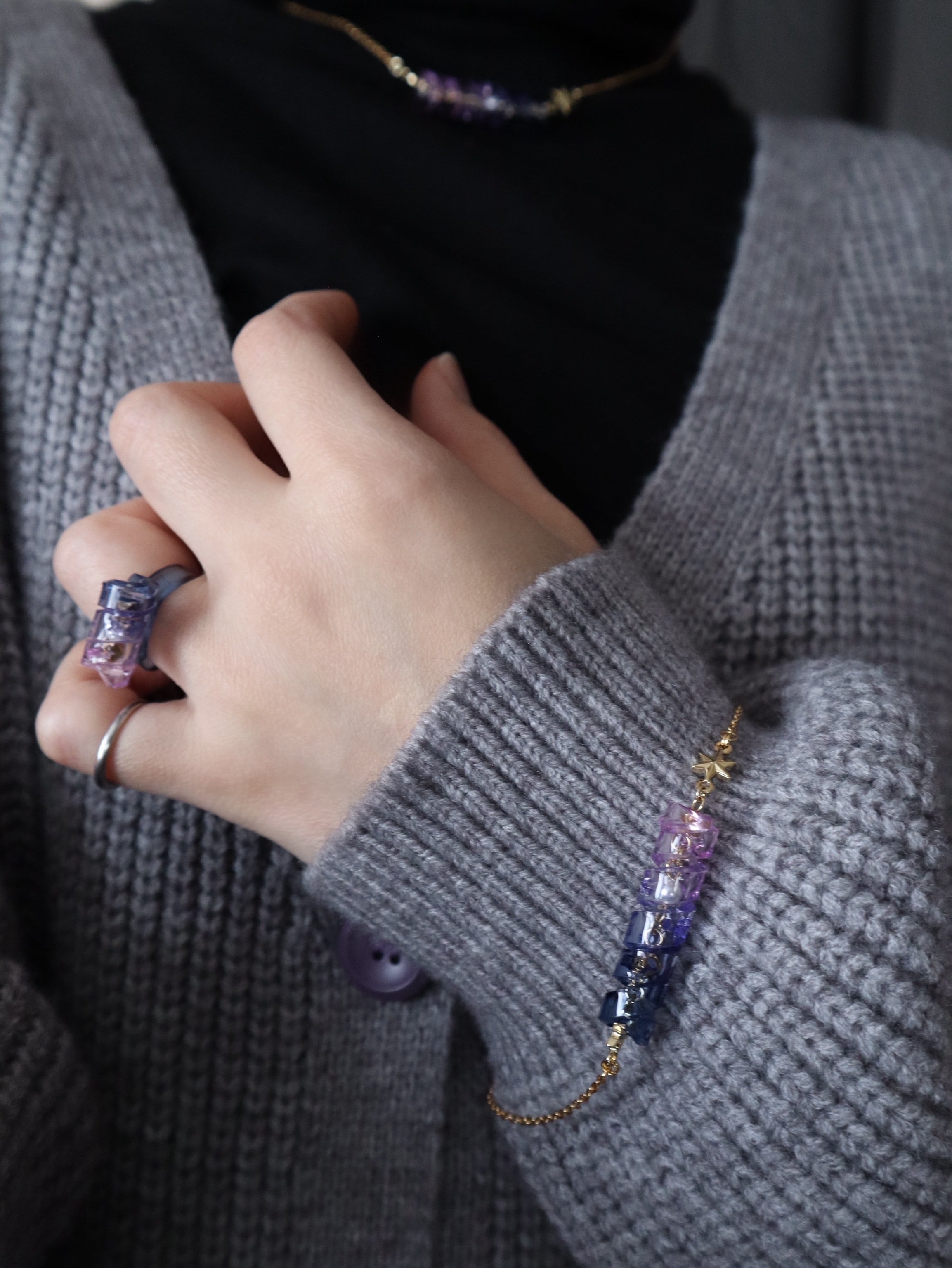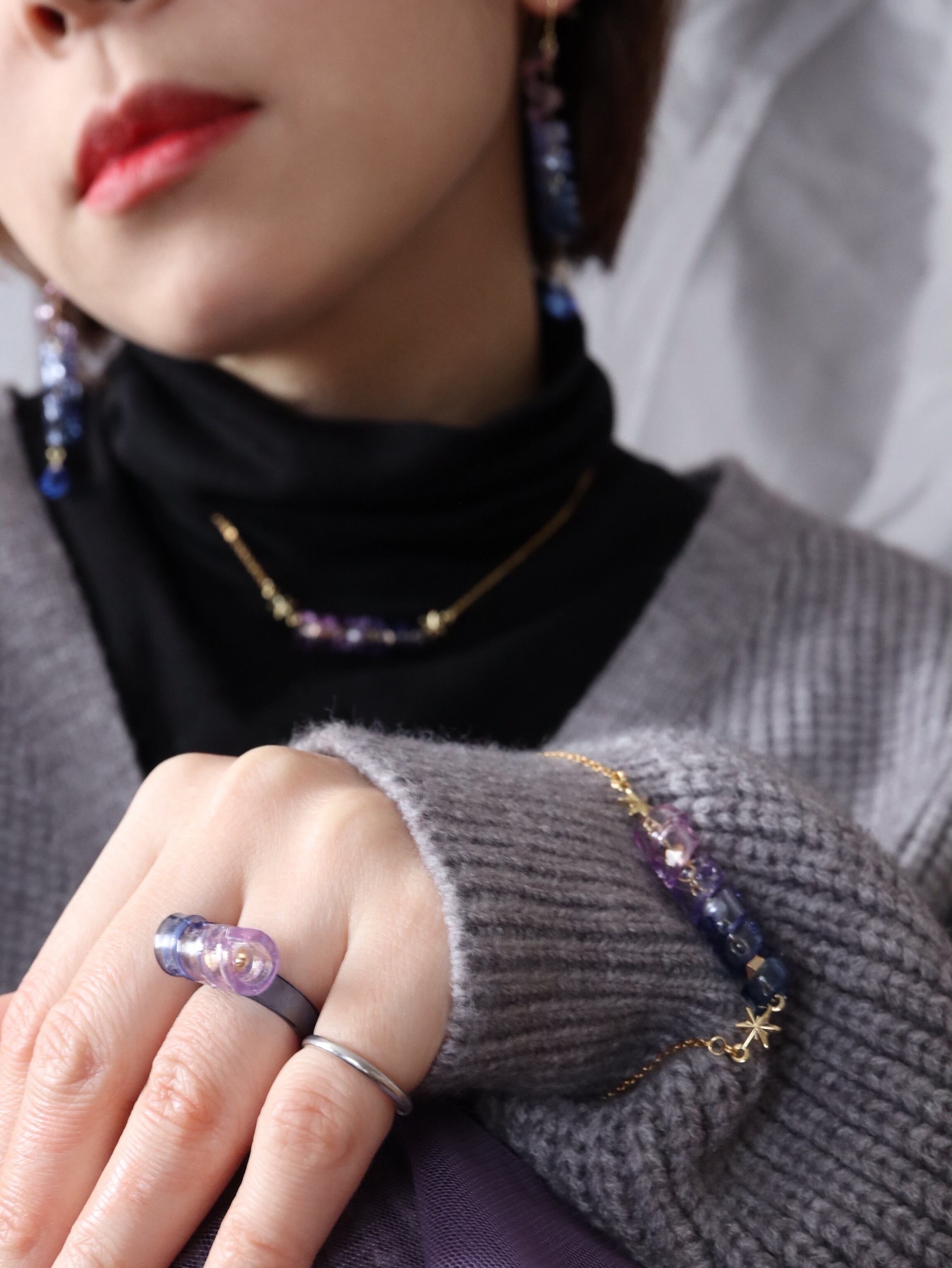 揺れるたび、宙を泳ぐ魚のようにきらめくブレスレット。