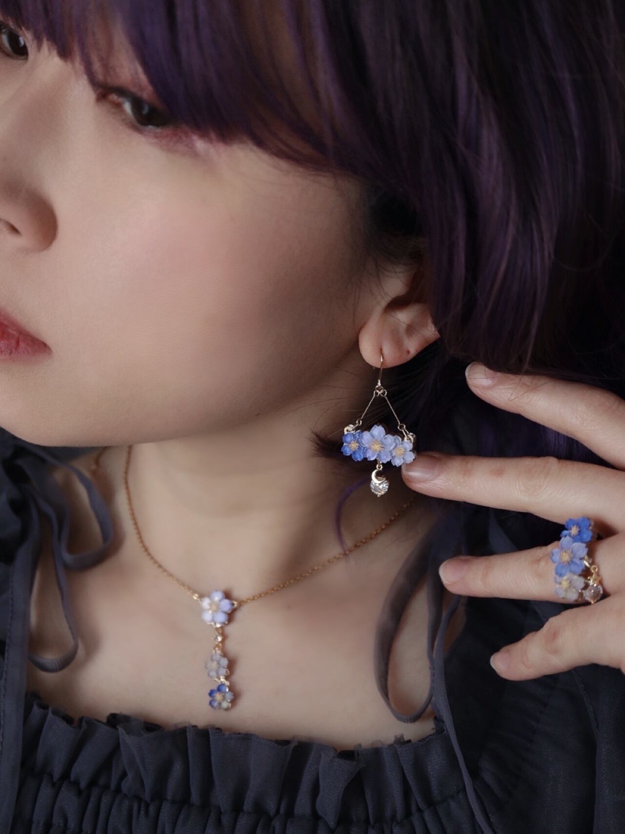 ▶︎金具パーツ等の貼り付けは強力接着剤+UVレジンで裏面全体をコーティングすることで強度を出しています。レジンでお肌が荒れやすい方は購入をお控えください。