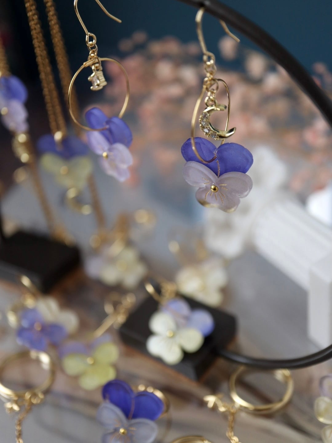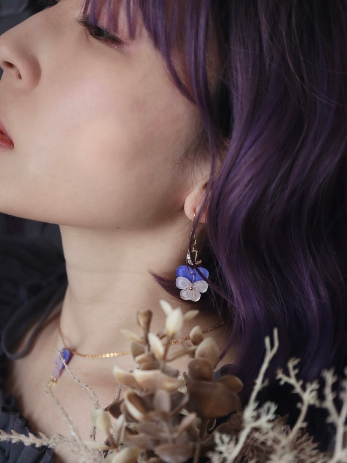 月明かりの庭に咲くビオラをイメージしたアクセサリー。