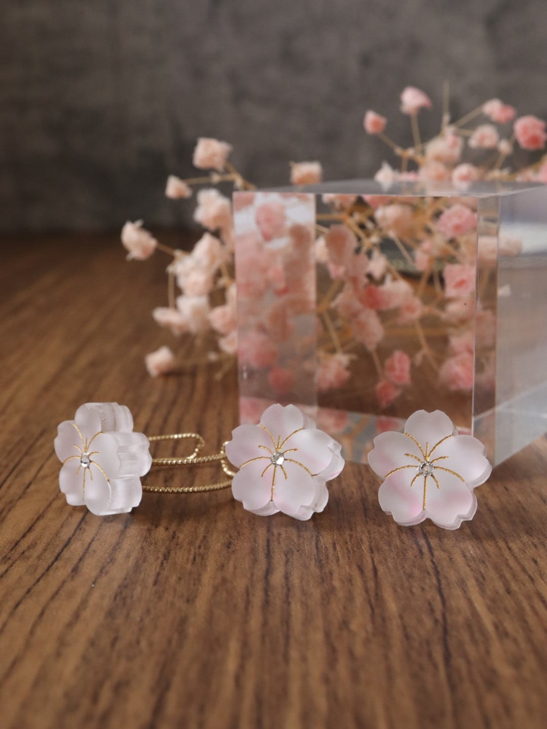 春の訪れを感じさせる、優しい桜のアクセサリー。